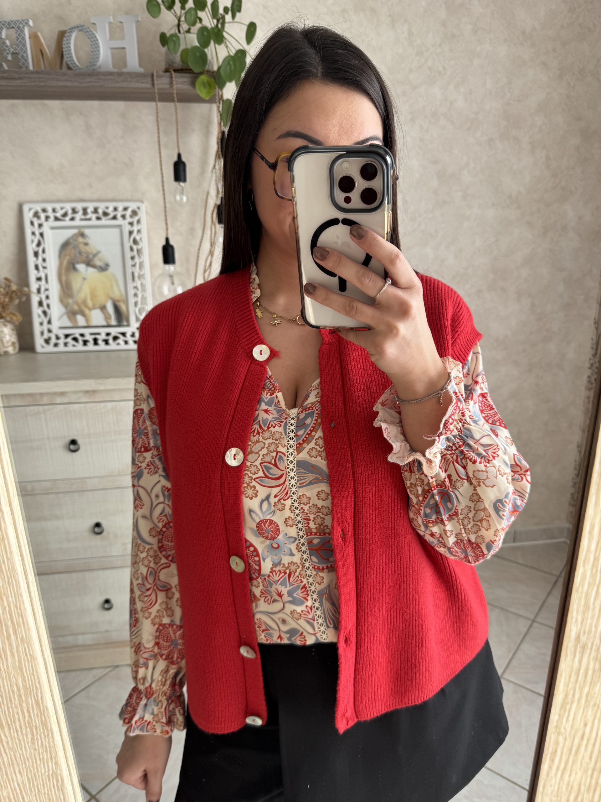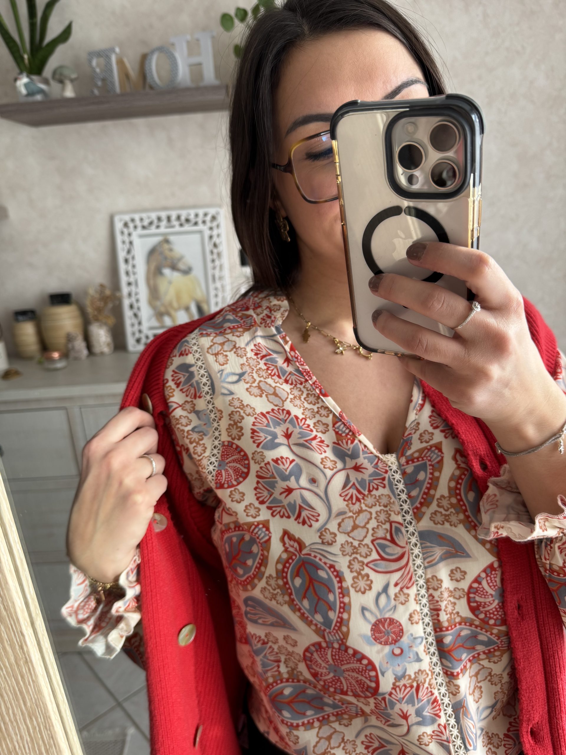 Mégane porte une taille M/L pour son 40 et mesure 1m62.
