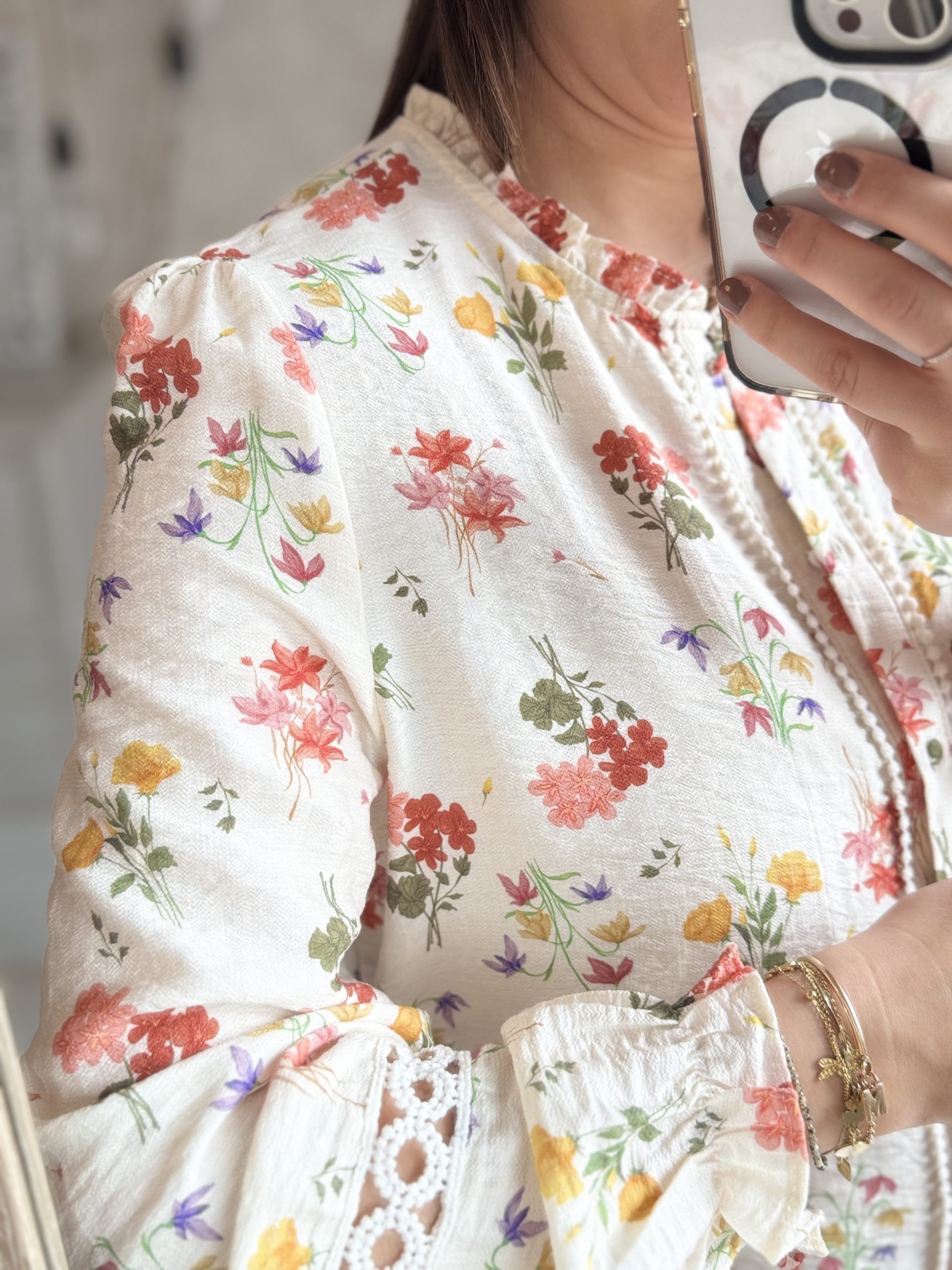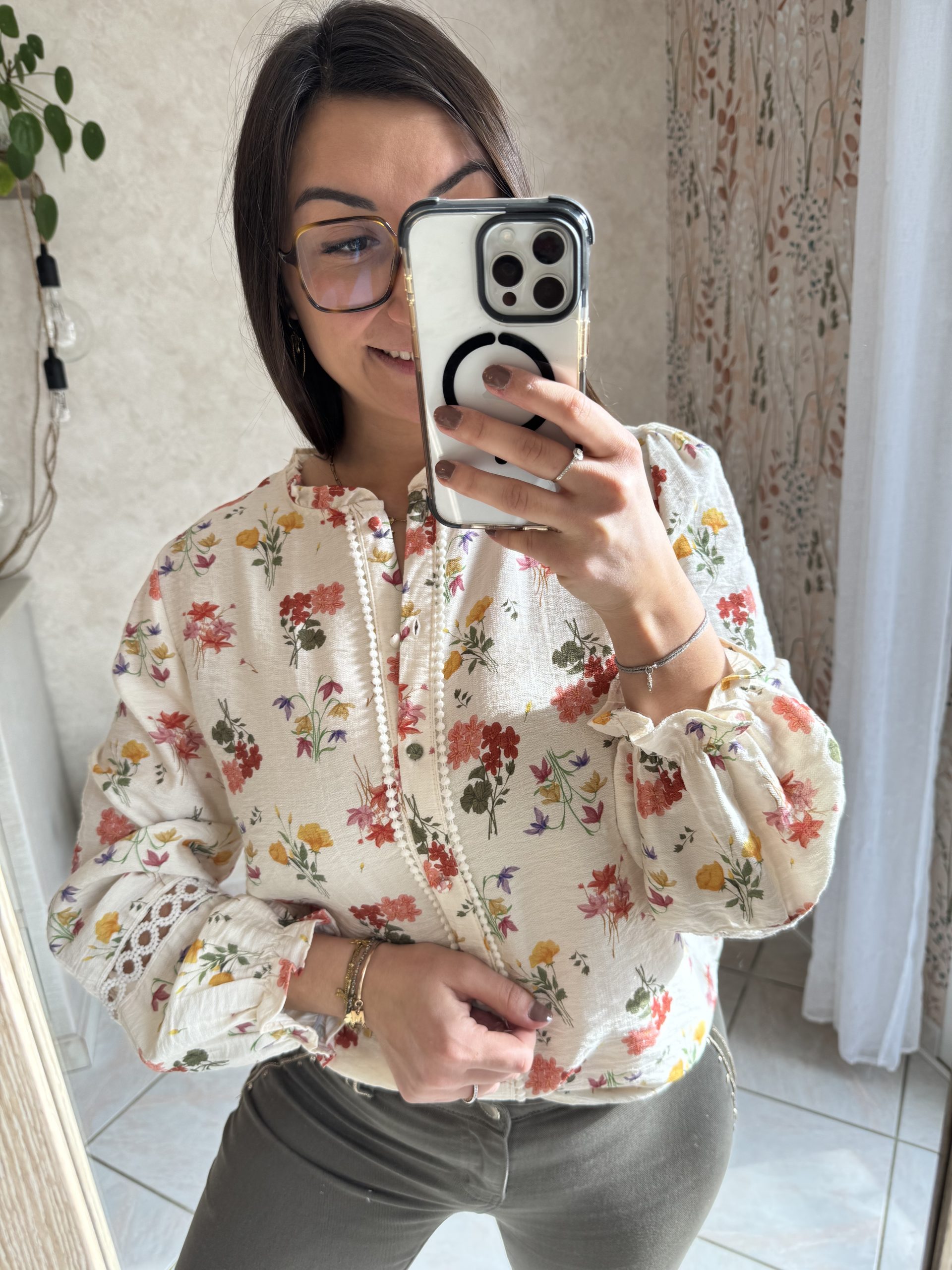 Couleurs : fond écru, bordeaux, rose, kaki, vert, jaune moutarde, mauve