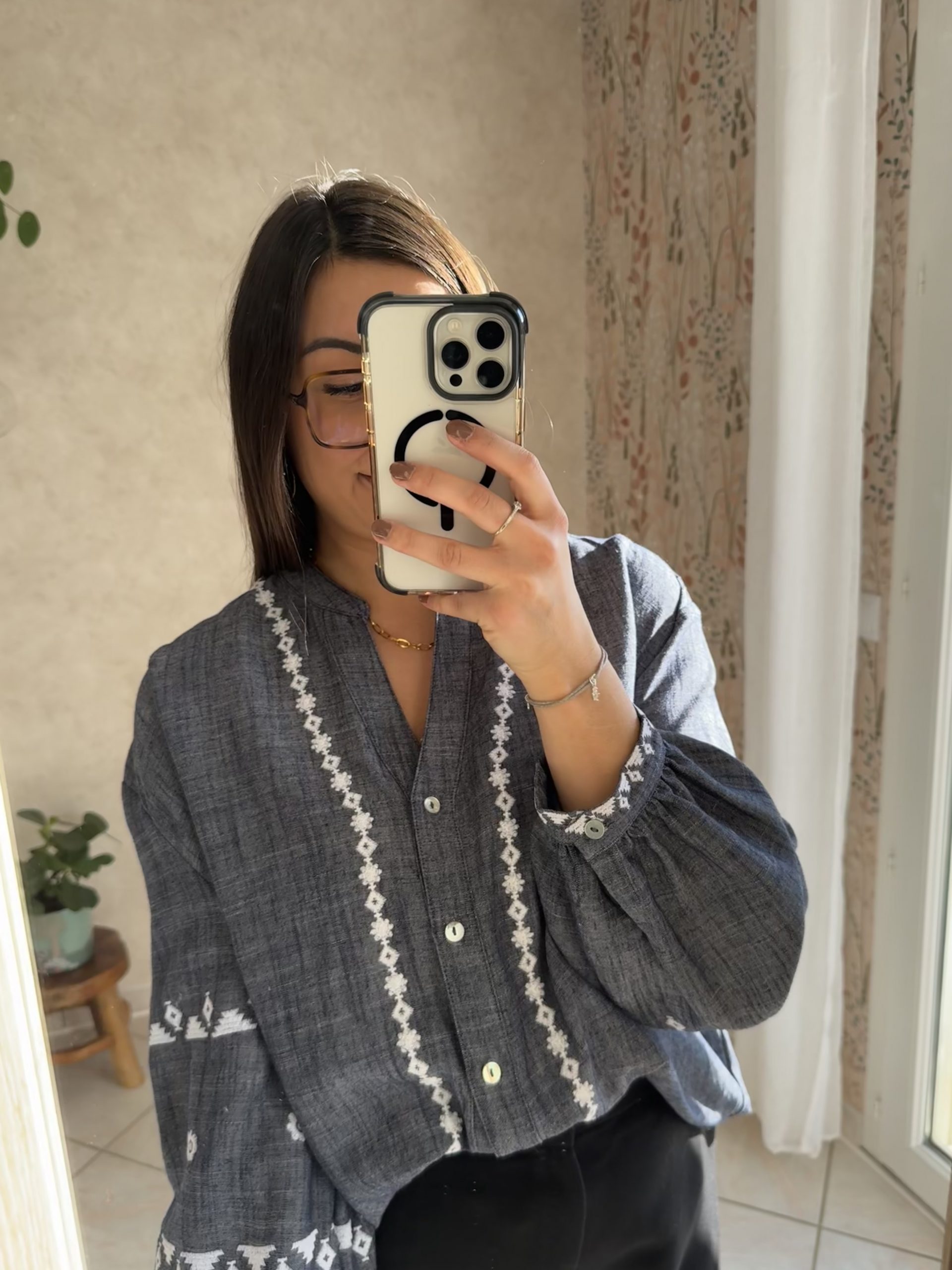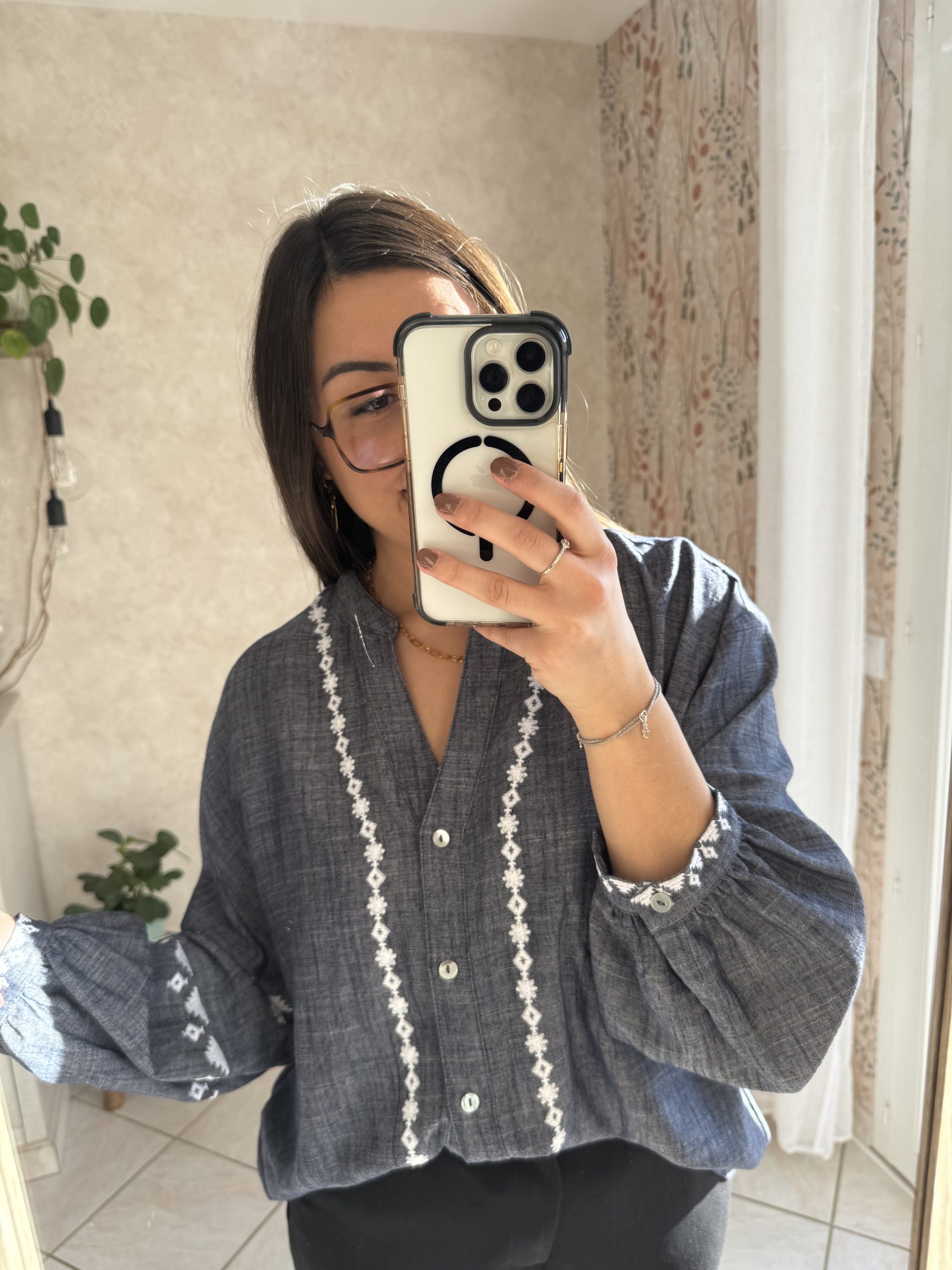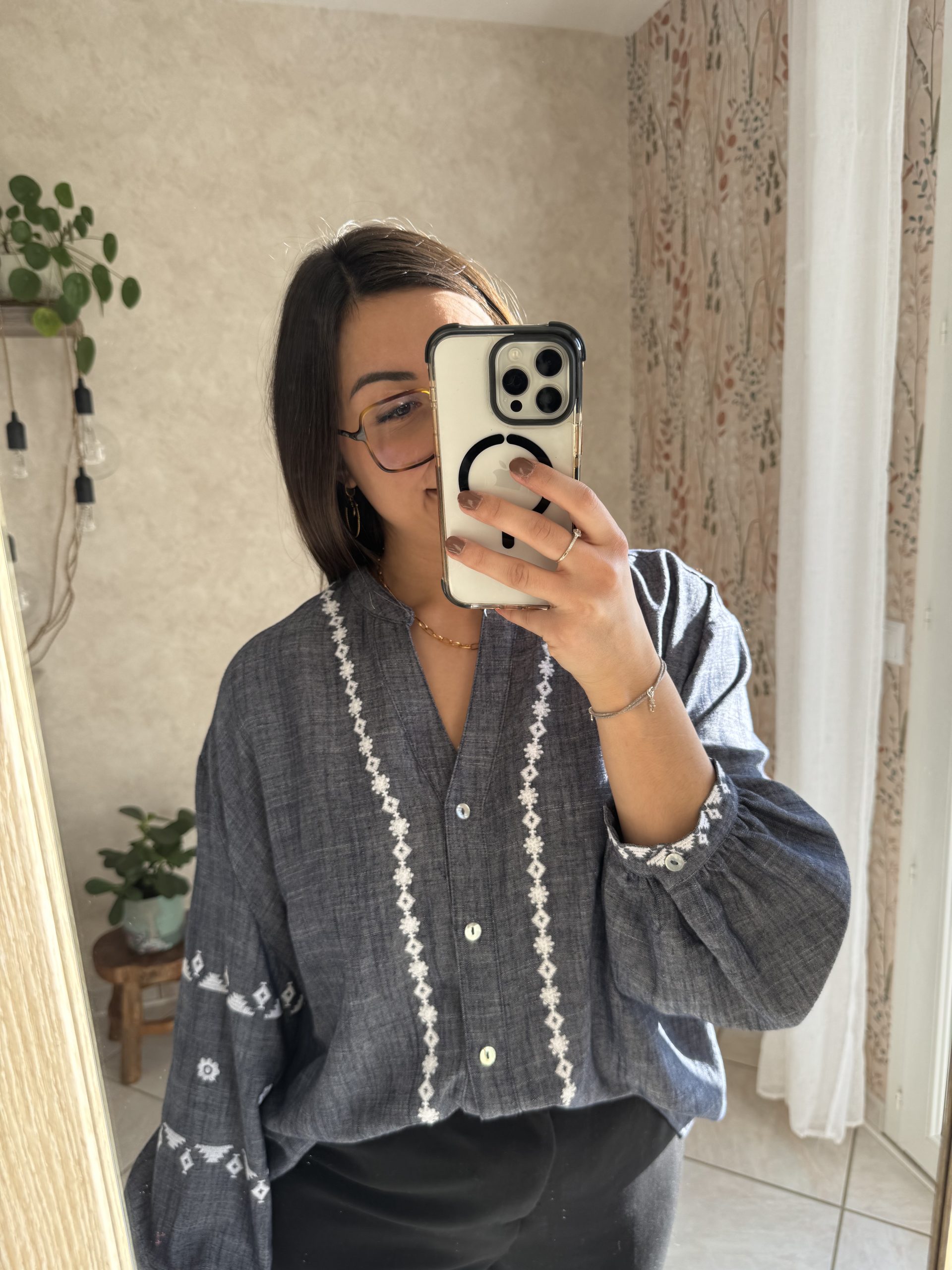 • Broderies sur le long du col, sur les manches et aux poignets