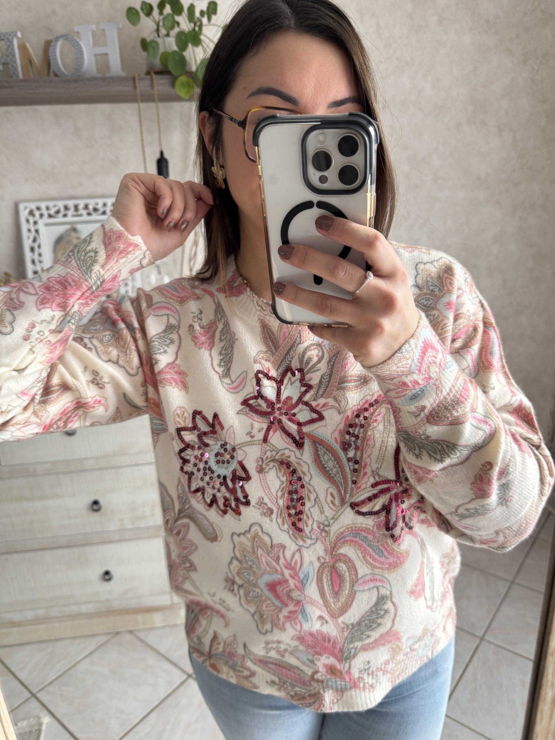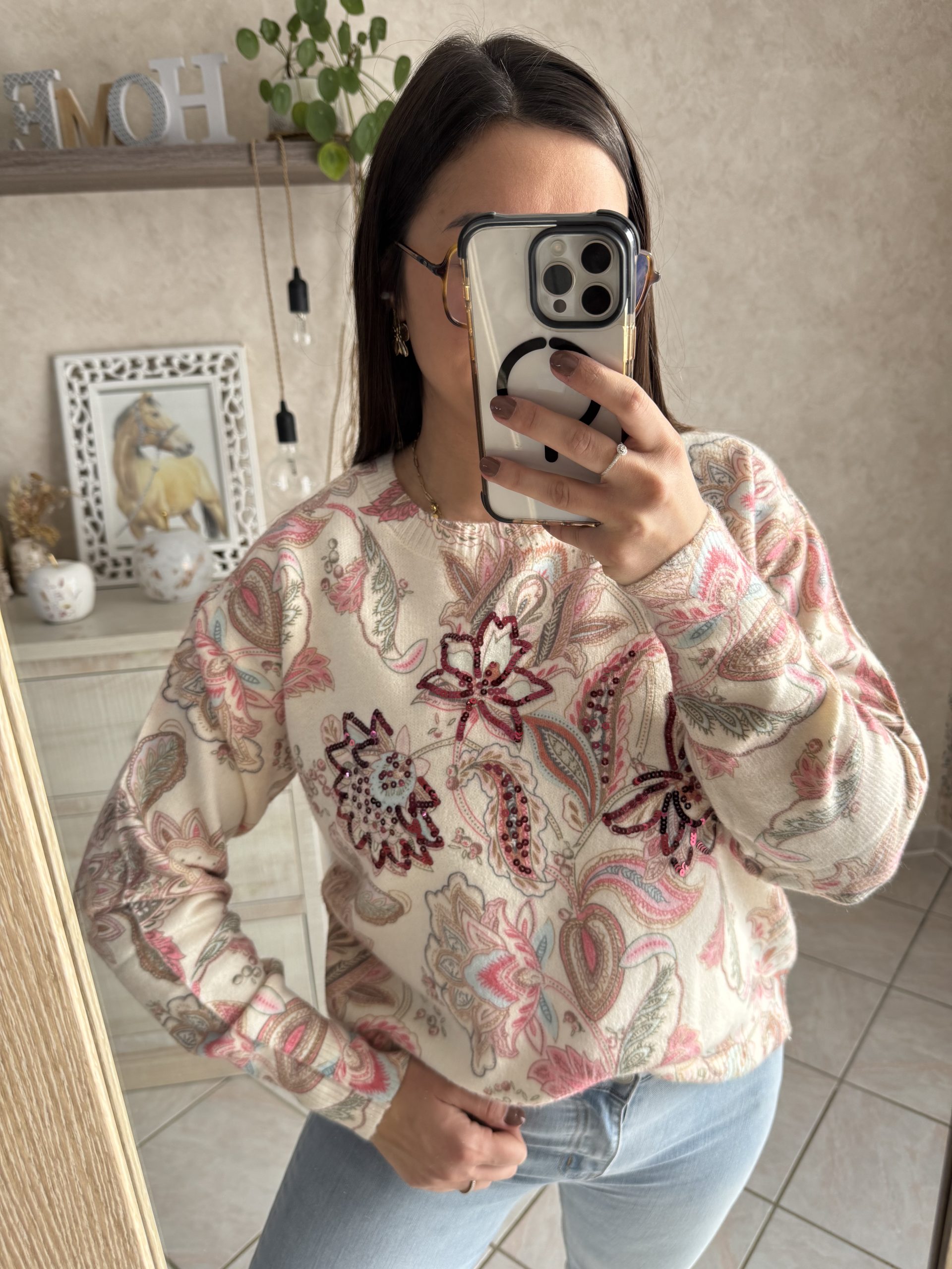 • Pull imprimé multicolor avec détails sequins bordeaux