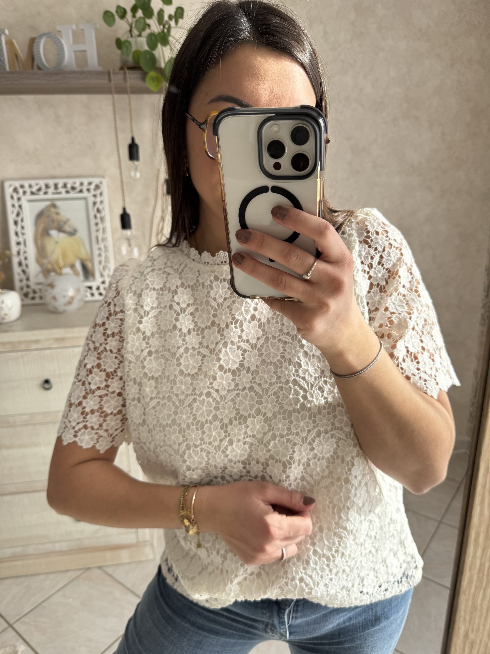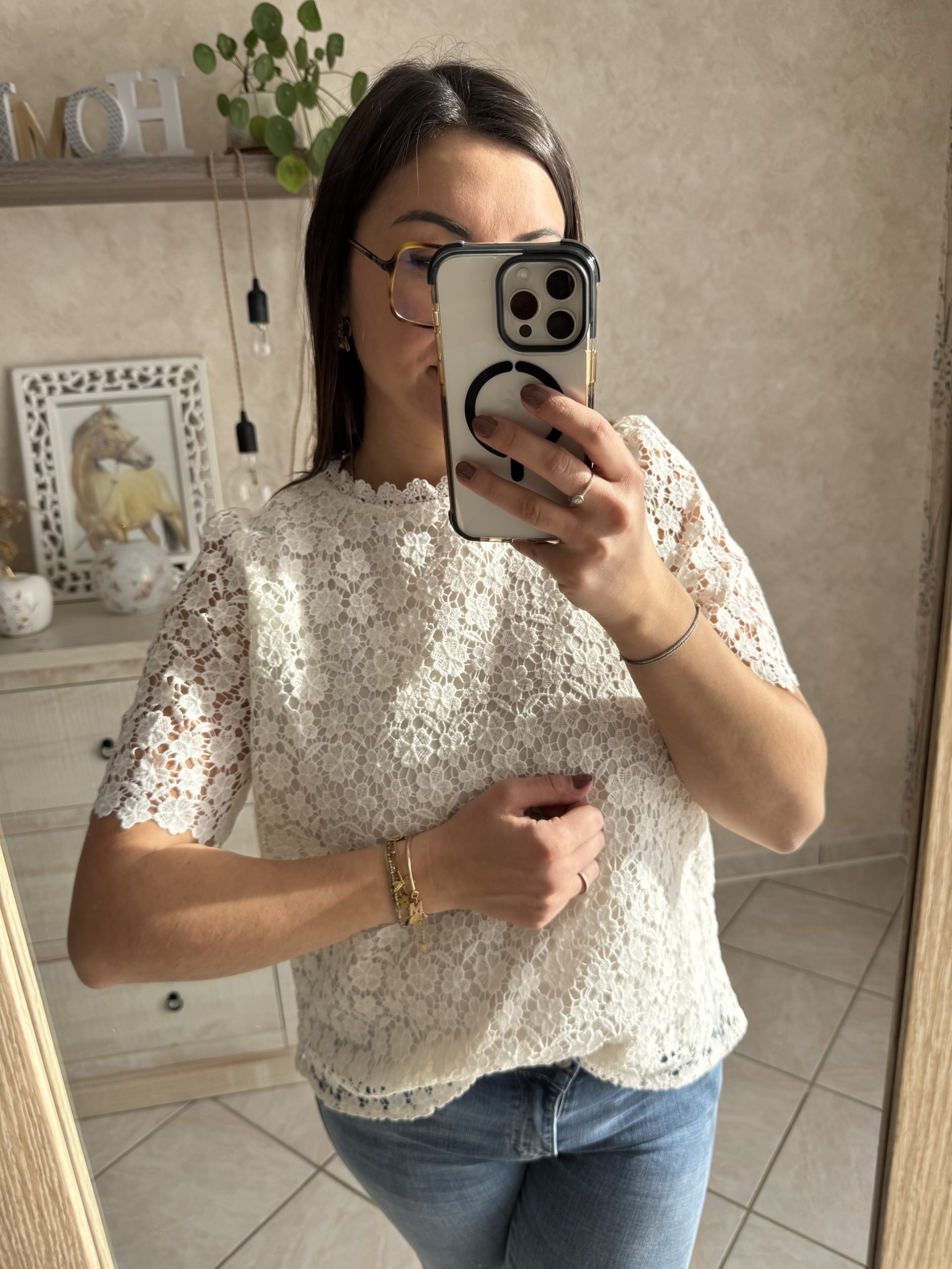 Mégane porte une taille L pour son 40 et mesure 1m62